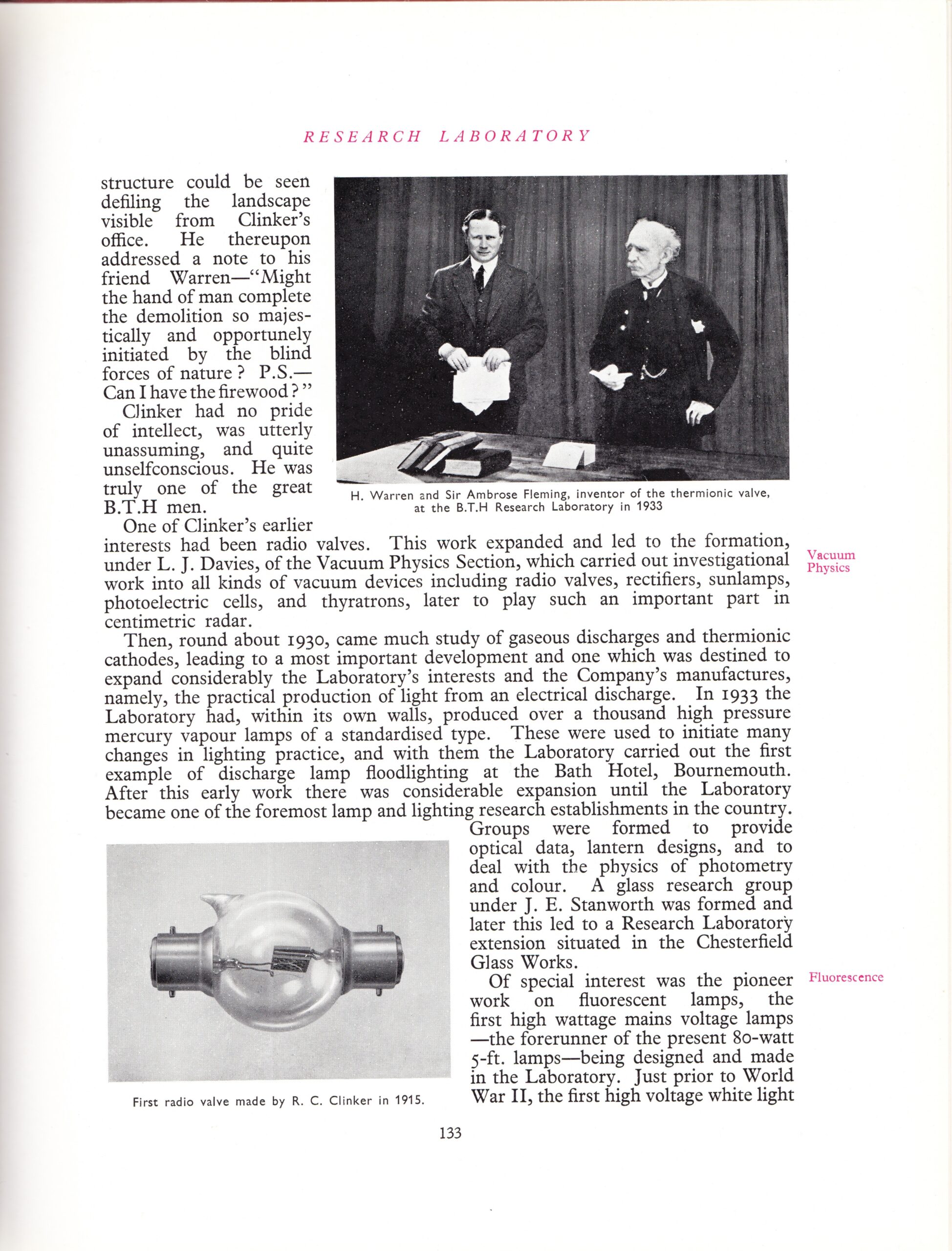 R. C. Clinker is confirmed to be a head research engineer for BTH at the Rugby location in 1924.