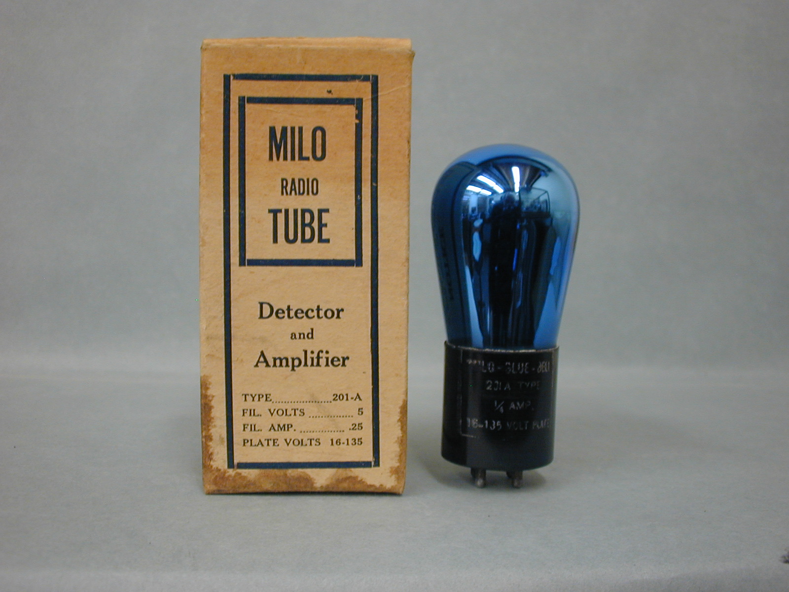 Fig. 8. Last but not least is the Milo UV 01A tube and Box. This box seems to be an earlier version of other boxes I have seen with a picture of Venus De Milo pictured. The base is inked with the Milo and specs that is mostly very clear. Could use a bit of information on this thought as well.