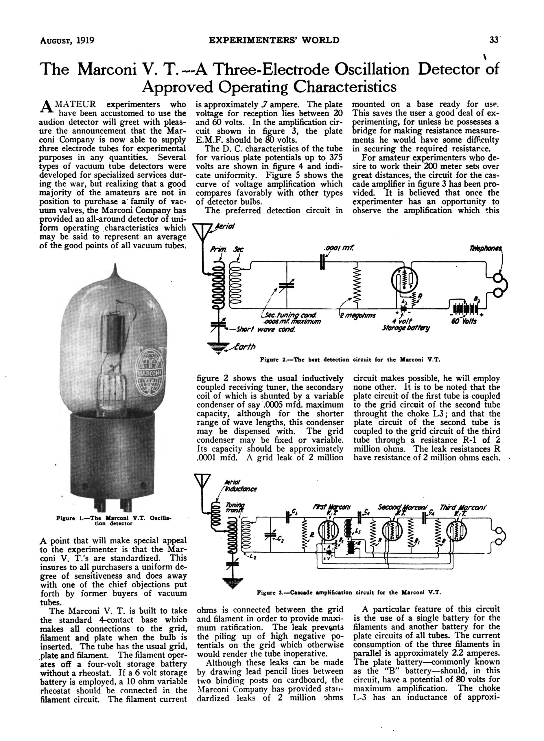Fig. 32 and 33. This article appeared in The Wireless World explaining how amateurs will be thrilled to learn that Marconi is going to offer only the hard version type A class 2 as this is the best all-around tube made. The amateurs were not impressed that the B class 2 soft was being dropped from production. The new VT was exactly the hard SE 1444, the Moorhead, 1918 war time tube.